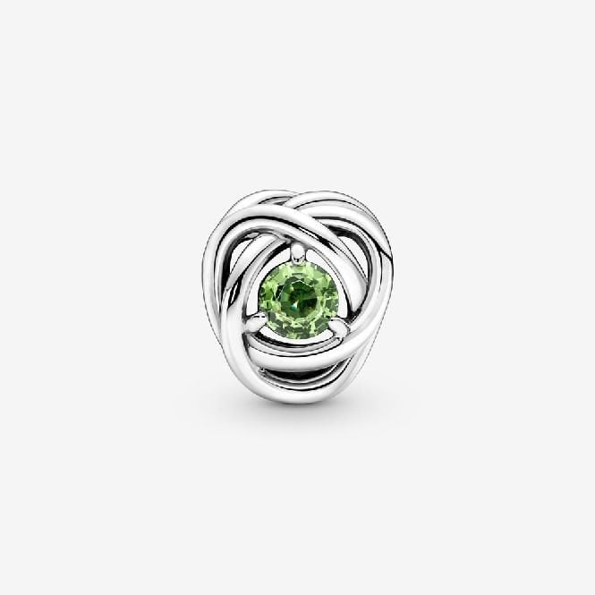 Adding this Spring Green Pandora Eternity Circle Charm to your bracelets and pendants will bring a touch of life to them. A vibrant green crystal is the centrepiece of this birthstone charm, which is beautifully shaped into the shape of an infinity braid. This beautiful charm is an ornament that adds a touch of colour and symbolism to every piece of jewellery that you wear.