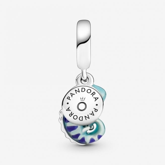 Featuring a special thermochromic enamel that changes colour as a result of temperature changes, the Chameleon Dangle Charm made from sterling silver features a chameleon motif. This type of symbol can be used to symbolise adaptability and change in the modern world. As a metaphor for living life in its full spectrum, this transformational chameleon reminds you to live it to the fullest. A light teal colour covers the Pandora charm's body, while deep blue covers its stripes and a deep purple colour covers its body. In a small silver disc attached to the bail, the words "You are magic" are engraved, reminding you that you are a chameleon-like no other.