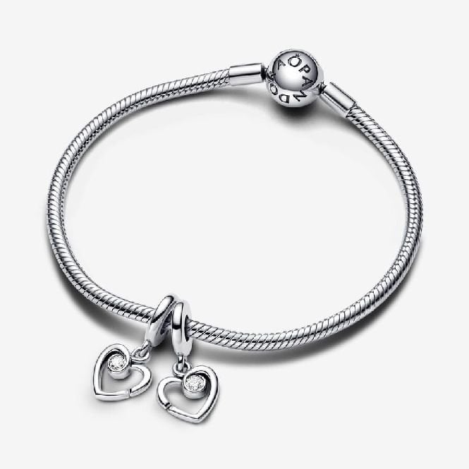 With the Pandora Forever & Always Splitable Dangle Charms, you can celebrate eternal bonds. An exquisite pendant charm meticulously crafted in 925 sterling silver. An intertwined set of two hearts encircles sparkling zirconia crystal stones in a flowing shape. The charm is engraved with the words "Always" and "Forever," expressing enduring love. Intricately designed in the shape of a heart with a cut-out, this charm allows you to attach two charms to represent unbreakable bonds. To mark an unbreakable bond, give half of it to someone special.