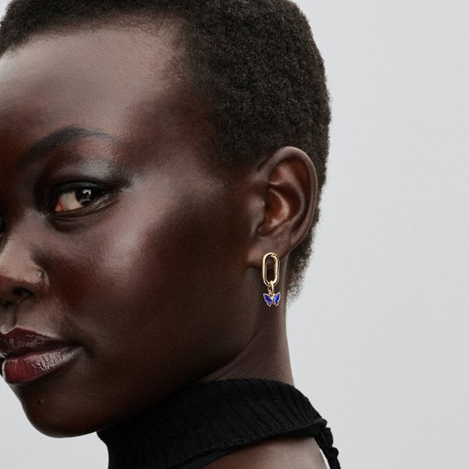 If you love jewellery that's a bit playful and makes a statement, this little butterfly is perfect for you. Our Blue Butterfly Mini Dangle Charm from our Pandora ME Collection, but also great with Moments pieces, features a sweet butterfly design. It's got a vibrant indigo-coloured imitation lapis lazuli detail with those lovely golden flecks you often see. Flip it over and you'll find a cool sunburst pattern on the back, too. Finished with a warm 14kt gold plating that's made to last (over their special metal blend), it adds a dazzling dose of sunshine to any charm bracelet or pendant holder for your Pandora necklace.