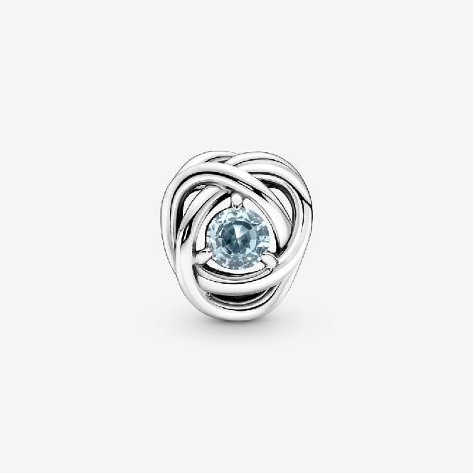 By adding this Sea Aqua Blue Pandora Eternity Circle Charm to your bracelets and pendants, you will be able to bring some colour and variety to them. It is embellished with an aqua blue-coloured crystal that is curved into an infinity braid shape around the crystal in the centre. It symbolises eternity and is the perfect way to add a little sparkle to your style that will make it stand out.