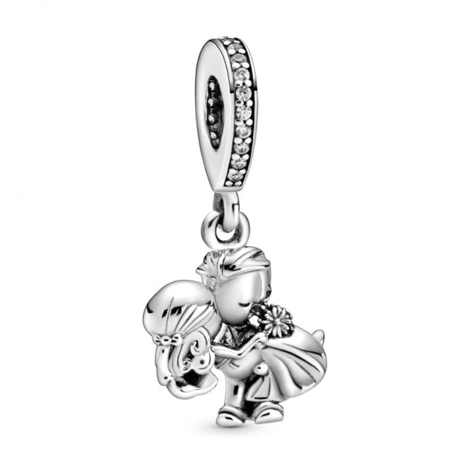 Make the special moment last forever with the 925 sterling silver Married Couple Dangle Charm. Let the romance of saying 'I do' live on with this emotional charm featuring a newlywed couple kissing. The groom gently holds his bride as she carries her flowers in her hands and the bail is set with clear zirconia. Make this meaningful piece a part of your collection or gift it to a bride close to your heart. This Pandora charm which is made using 925 sterling silver is part of the Pandora People collection.