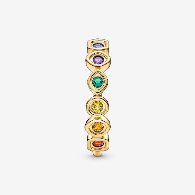 From the Marvel x Pandora collection, in ring size 54, you can harness the power of the Infinity Stones with Marvel The Avengers Infinity Stones Ring. It is perfectly balanced, as all things should be. This 14kt yellow gold-plated ring features six colourful imitation crystal stones symbolising the most prized objects in the cosmos. The inside of the band is engraved with each stone's interconnected power: space, reality, power, soul, mind and time. Pair these Pandora Rings with other battle-ready pieces from the exclusive range.