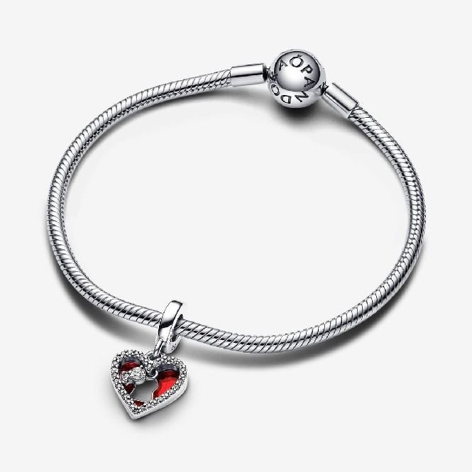 Giving a gift of love with this Pandora Red Heart & Keyhole Double Dangle Charm is the perfect way to show your love. In the centre of these sterling silver charms is a keyhole-shaped dangle with a pave-set heart outline and a pave-set heart outline at its edges. A vibrant red enamel heart-shaped disc with a cutout on one side matches perfectly with the keyhole dangle that is hidden behind the disc. I have engraved the message "My love is yours" on the back of the pendant. You can add this charm holder to any Pandora Moments bracelet or charm holder to make a great gift for your loved one.