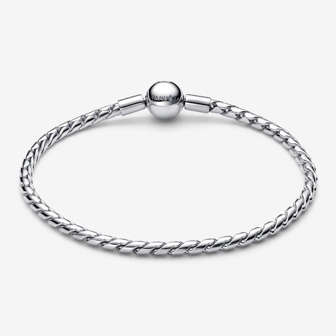 Craft your personal story with this 18cm length Round Clasp Wing Chain Bracelet. This sterling silver bracelet features a refreshed, bold snake chain design that adds a modern look to your wrist. The charm bracelet is finished with the iconic round Pandora clasp, perfect for adding your favourite charms to create a piece that is as unique as you are.