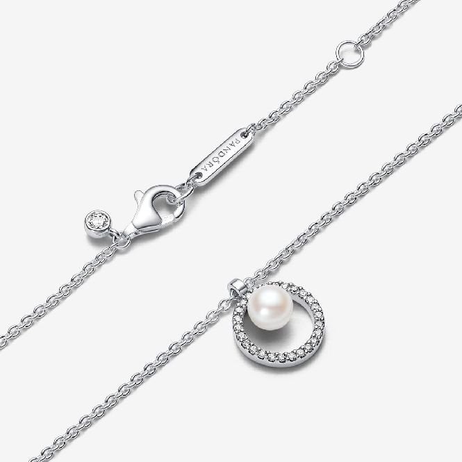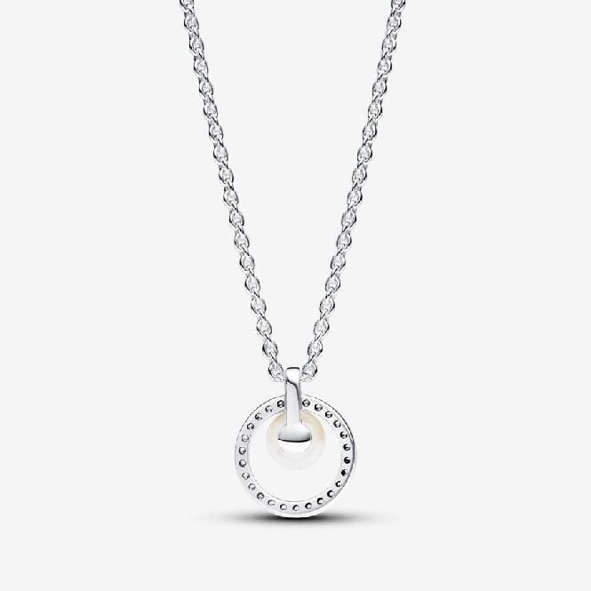 Adding a touch of classical glam to your look is easy with our Treated Freshwater Cultured Pearl & Pave Collier Necklace. On an adjustable 45 cm chain, this contemporary pendant, featuring lustrous treated freshwater cultured pearl and sparkling zirconia crystal stones, is crafted using 925 sterling silver. Pandora's renowned craftsmanship is evident in the pearl pendant as it slides along the chain. Don't be afraid to embrace its timeless beauty and versatility. You can wear these Pandora necklaces on special occasions and every day for a sophisticated look. There may be slight variations in size and colour between treated freshwater cultured pearls, and normal wear and tear may occur over time. A carefully designed bleaching procedure and lustre enhancement are used to sweeten freshwater cultured pearls.