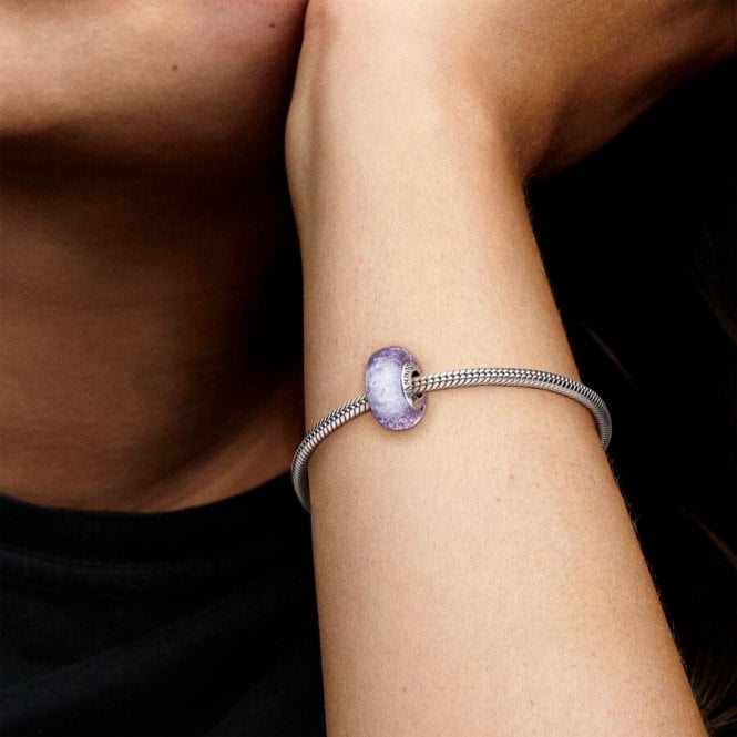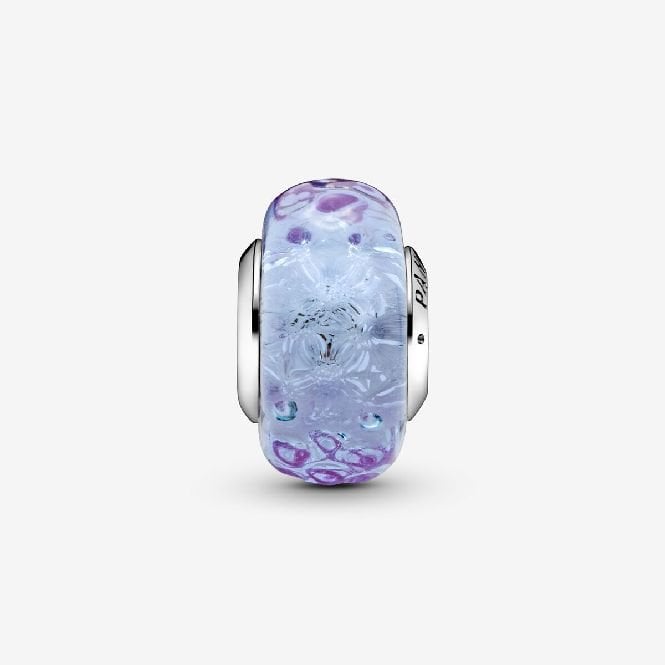 These Wavy Fancy Lavender Murano Glass Charms will turn any outfit into something special. This lavender lilac Murano glass charm is filled with glitter and topped with a wavy glass surface to make your look stand out. It's a little smaller than their traditional Murano charms, so it's the perfect match for your style. With Pandora's iconic logo engraved on the sterling silver core, every Murano glass charm is hand-finished.