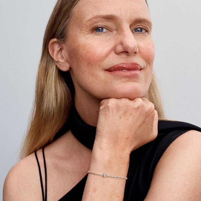 With a sparkle that emanates from the heart, this exquisite 20 cm length 14kt gold-plated bracelet celebrates love in all its forms. A radiant heart-shaped stone, prong-set at its centre, takes centre stage amidst a dazzling array of 58 bead-set zirconia crystal stones. The Pandora bracelet's classic design is completed with a lobster clasp for a secure closure. This Gold Sparkling Heart Tennis Bracelet piece is crafted to honour the love that resides within each of us, making it the most perfect gift for that special someone who cherishes the power of love.