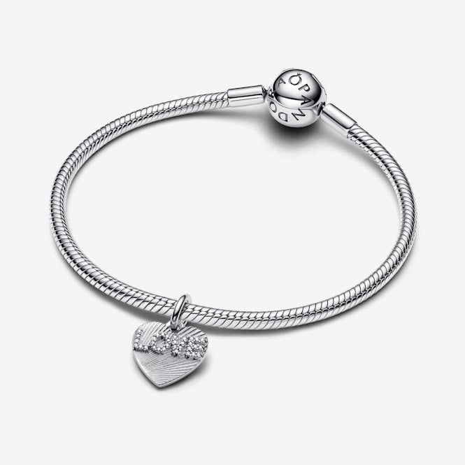 Showcase your affection this or any season with the Engravable Love Heart Dangle Charm. Crafted from sterling silver, this dual-sided charm features the word "LOVE" spelled out in using zirconia crystal stones on the front. The reverse offers a space for a personalised engraving, allowing you to add a unique message of love and wisdom. Create a truly one-of-a-kind gift by engraving a sentiment that holds special meaning.
