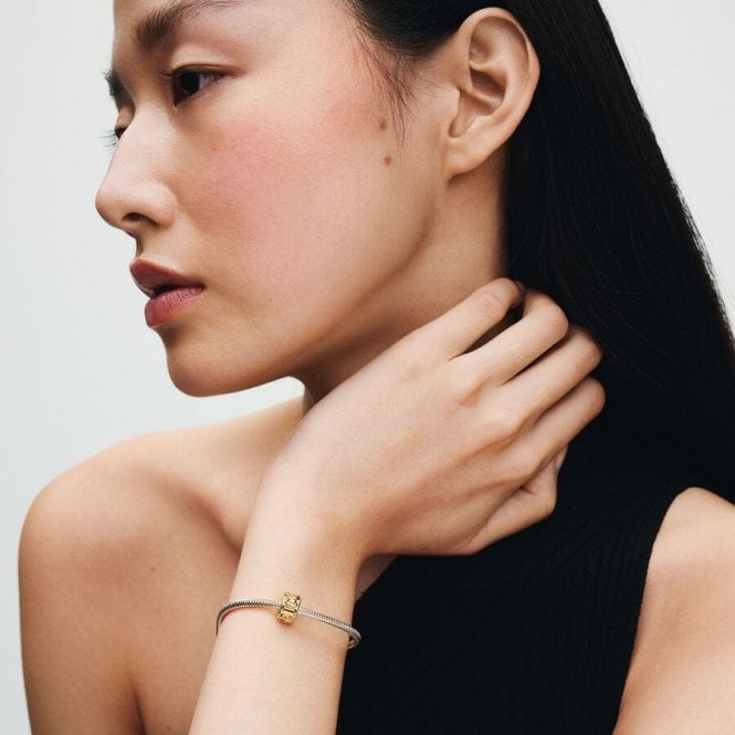 Elevate your Pandora Moments bracelet with these simple yet striking Gold Knotted Hearts Clip Charms. This 14kt yellow gold-plated charm beautifully combines the iconic heart symbol with the classic love knot, creating a design rich in emotional appeal. Add a heartfelt touch to your collection and use it to perfectly space out your charms for a balanced and stylish look. Please remember that these Pandora clip charms do not have a silicone grip, so it will slide freely unless positioned on threads or between two raised charm dividers.