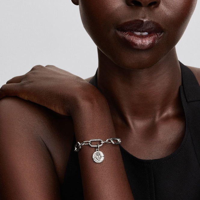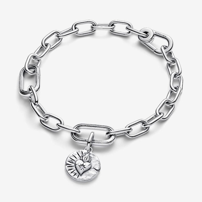 Showcase a powerful symbol of love with one of our Pandora Heart Medallion Charms. Crafted from polished sterling silver, the medallion features a striking flaming heart design and the Latin phrase 'AMOR VINCIT OMNIA,' which translates to 'Love Conquers All.' This meaningful charm is a constant reminder of the strength and importance of love.