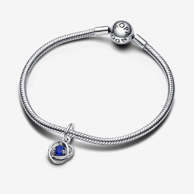 This intricate Blue Eternity Circle Dangle Charm is a must-have infinity charm for your Pandora Moments collection. It's a dangly charm made from highly-polished sterling silver with a pretty open infinity symbol in the centre. The centre part is filled with a gorgeous blue crystal, and there are even tiny sparkling stones around it for extra shine. This charm is more than just cute, it symbolises forever! Wouldn't it be the perfect gift for your BFF or to remind yourself that some things, like friendship, truly last? Or hey, treat yourself - you deserve it!