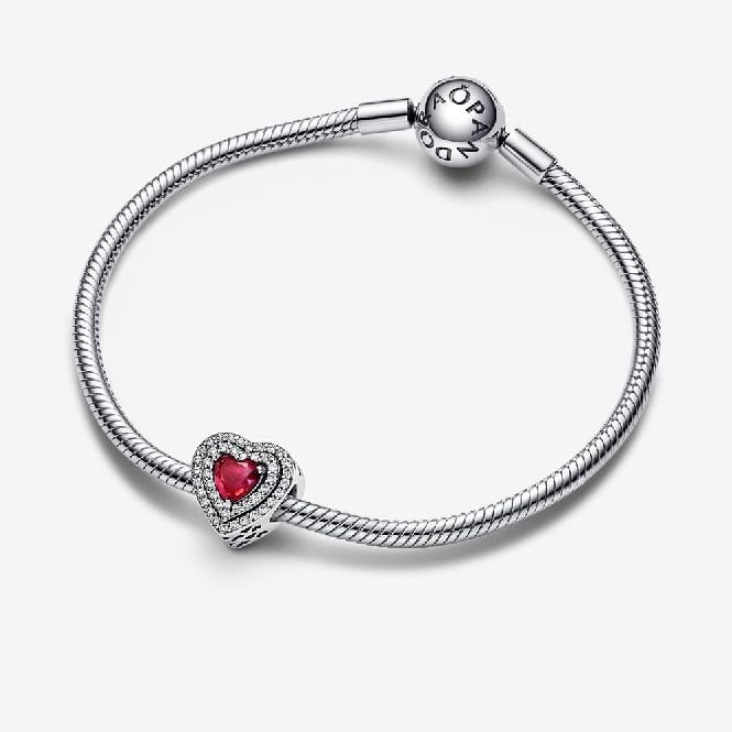 Add one of these Pandora Sparkling Levelled Heart Charms to your collection. Enjoy its classic elegance year after year with this classic style that will never fade out of fashion. It is absolutely stunning to look at the two vibrant red imitation crystal hearts set inside the pave embraces on each side of this sterling silver Pandora charm. Make sure you give it a try yourself, or you can gift it to someone you know will love it if they wear it.