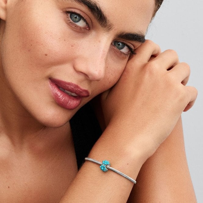 Bring the beauty of the ocean to your jewellery with our Turquoise-coloured Ocean Charm. If you have a passion for the ocean and its wonders, this Pandora charm is a perfect way to keep a little piece of it with you. These charms are designed to remind you of the sea, with clusters of vibrant imitation turquoise stones that shimmer just like sunlight on the water and evoke the gorgeous colours of coral reefs. Crafted in sterling silver, which gives it a lovely cool and bright base, the charm also features sparkling zirconia crystal stones that add an extra touch of brilliance. The imitation turquoise has that beautiful blue shade we all love, without the potentially hefty price tag.