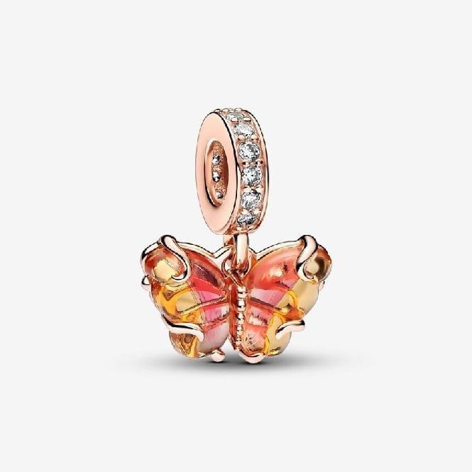 Rose Pink & Yellow Murano Glass Butterfly Dangle Charms