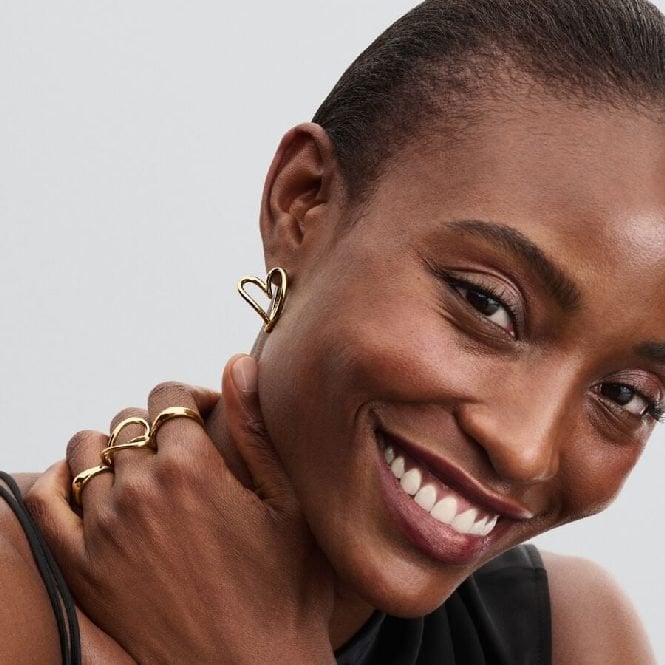 Embrace the natural beauty of love with these Gold Organically Shaped Heart Hoop Earrings. Crafted from 14kt gold-plated sterling silver, these Pandora earrings feature abstract openwork hearts inspired by the fluid forms found in nature. Sold as a pair, the earrings mirror each other and are secured with a simple click closure for effortless wear. Combine them with our matching Organically Shaped bangles and rings to create a modern expression of love's enduring symbol.