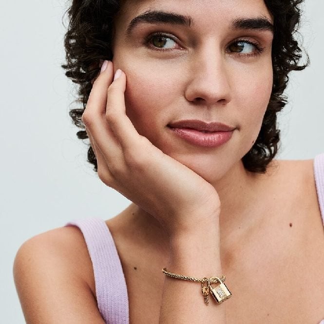 These Pandora Padlock and Key Dangle Charms is a symbol of lasting love and connection. This 14kt gold-plated charm features two parts: a padlock and a key, which is also a charm itself. Inspired by love locks placed on bridges around the world, these charms by Pandora are perfect for sharing with someone special. Wear the padlock on your bracelet or necklace and let your loved one carry the key. You can also wear both charms together on your favourite jewellery too.