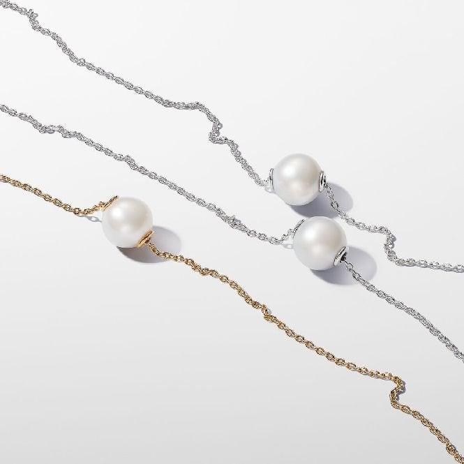 Make a lasting impression with our Pandora Timeless Treated Freshwater Cultured Pearl Collier Necklace. An adjustable 45 cm cable chain with a treated freshwater cultured pearl pendant shines as if it is reflecting light from beneath the ocean in this 14kt gold-plated piece. An exquisite crystal zirconia stone accents the clasp in a clear-white shade. Suitable for both casual and special occasions, Pandora Necklaces represent the fusion of classical and contemporary styles. There may be slight variations in size and colour between treated freshwater cultured pearls, and normal wear and tear may occur over time. A carefully designed bleaching procedure and lustre enhancement are used to sweeten freshwater cultured pearls.