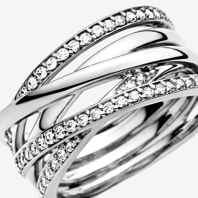 Make your individuality stand out with this Pandora ring which combines sparkling and polished lines. The sophisticated and contemporary design for this sterling silver and size 64 ring combines rows of highly-polished metal with rows of shimmering zirconia studs for an enticing and refined look. It can be worn on its own to create a stylish cocktail ring or stacked with other Pandora rings for a more prominent style.